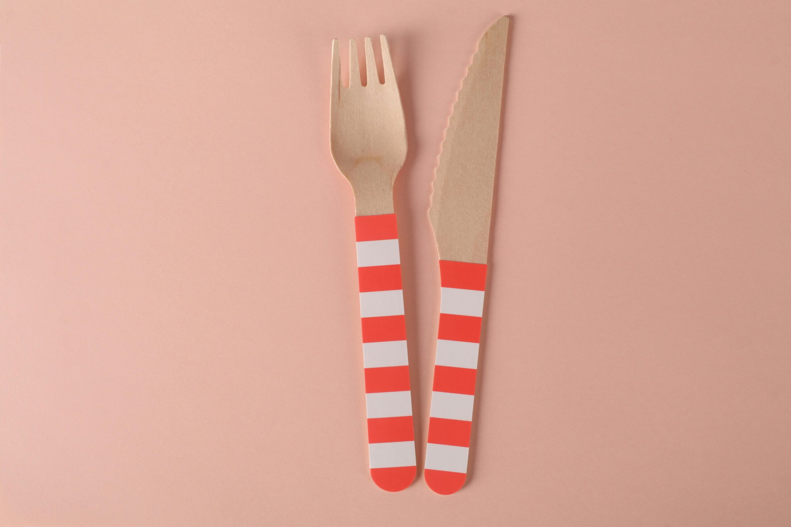 Biodegradable spoons, forks, and knives made from wood. A sustainable choice for food service.